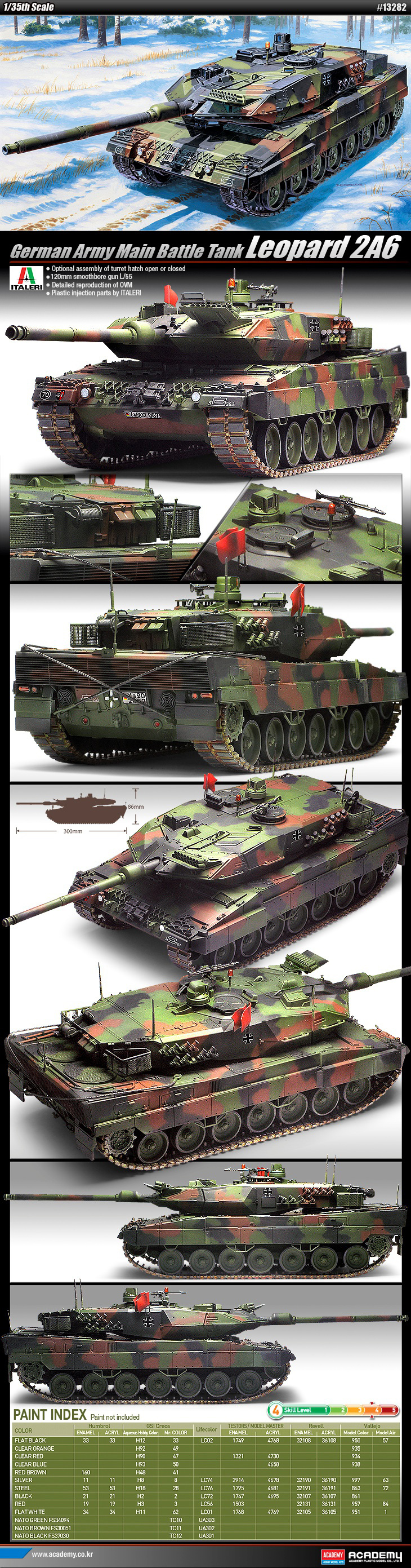 - home > 아카데미과학 > AFV > [13282] 1/35 German Army Main Battle Tank Leopard 2A6 / 독일 육군 주력전차 레오파드 2A6